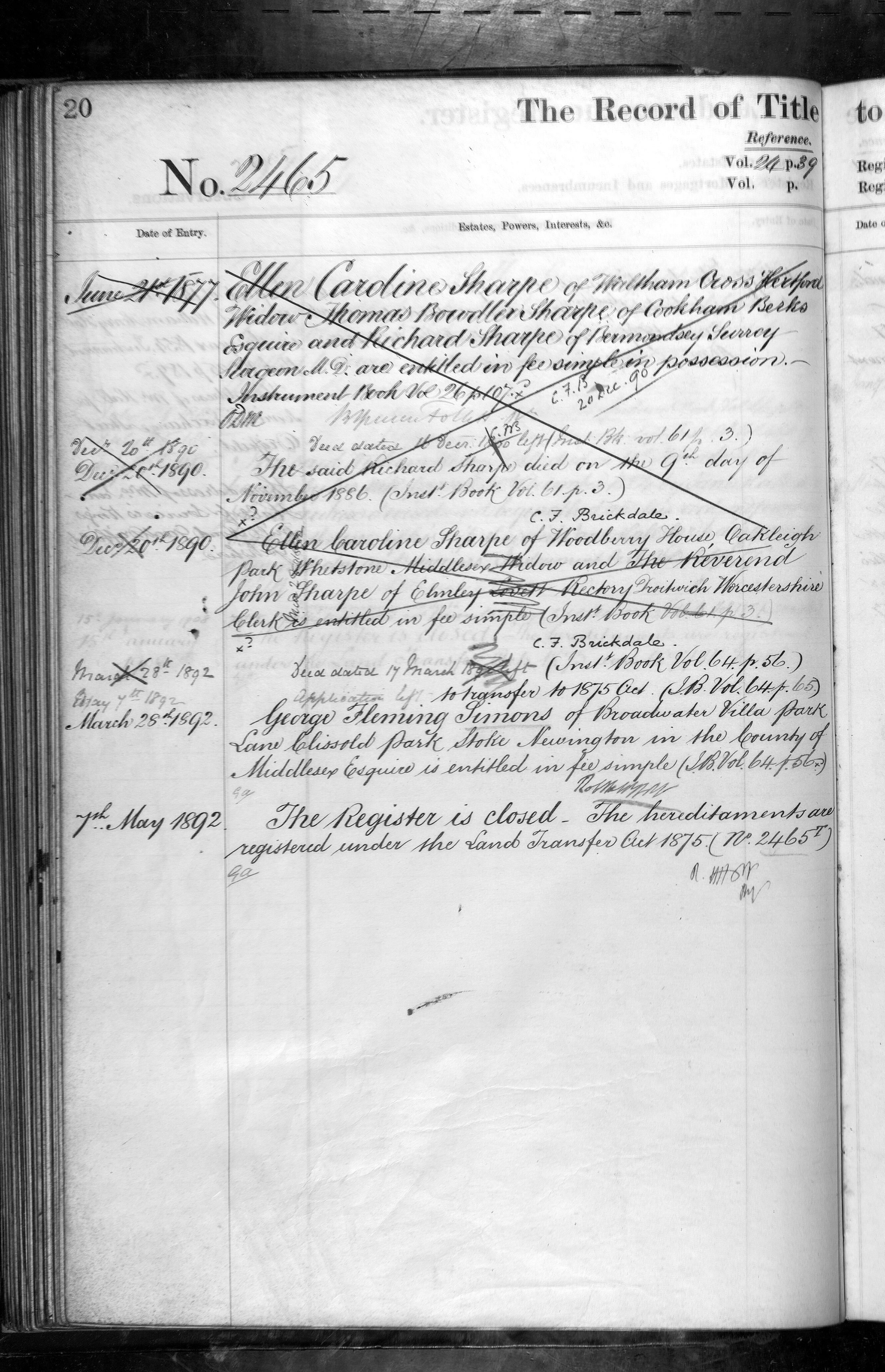 - Ellen Caroline Sharpe, Richard Sharpe, George Fleming Simons